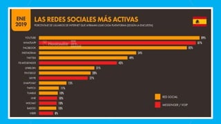 Este documento describe varias redes sociales como Facebook, YouTube, Instagram, WhatsApp y sus principales ventajas y desventajas. Facebook permite conectarse con amigos y familiares, pero también plantea riesgos para la privacidad. YouTube es una herramienta de aprendizaje valiosa pero los videos pueden ser bloqueados. Instagram es una red social de fotografía pero depende demasiado de imágenes. WhatsApp facilita la comunicación pero requiere compartir el número de teléfono.