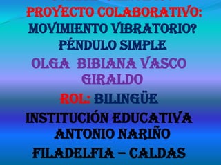 El documento habla brevemente sobre varias herramientas ofimáticas y de redes sociales como foros, Facebook, Hi5, correo electrónico e Internet y cómo pueden usarse para desarrollar un proyecto colaborativo sobre un péndulo simple.