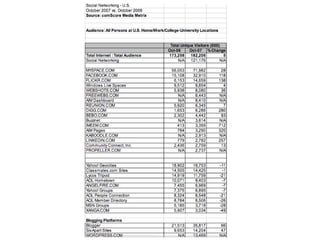 Las redes sociales son formas de interacción social que permiten a grupos con intereses comunes conectarse e intercambiar información. El documento describe la evolución de las redes sociales desde sitios como MySpace y Facebook hasta su uso actual y futuro, incluido su potencial para mejorar la productividad de las empresas y generar contenido valioso. También analiza tecnologías emergentes como la Web 3.0 que podrían conducir a redes sociales más inteligentes e inmersivas.