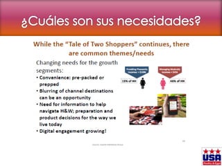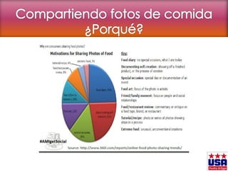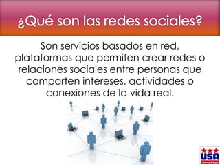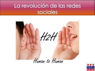 El documento habla sobre la importancia de las redes sociales para los negocios. Señala que el 86% de los comerciantes opinan que las redes sociales son importantes y el 89% afirma que el mayor beneficio es una mayor exposición. También menciona que las redes sociales pueden aumentar el tráfico, proporcionar información de mercado, desarrollar lealtad de clientes y mejorar las ventas. Finalmente, enfatiza la necesidad de definir objetivos claros, conocer a la audiencia y interactuar con ellos en las plata