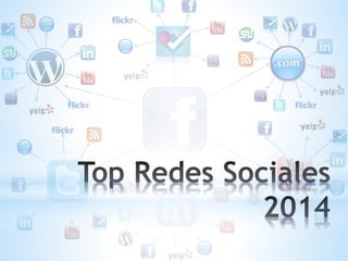 El documento describe las 10 redes sociales más populares del mundo, basándose en el número de usuarios registrados. Las primeras tres son Facebook con más de 1.110 millones de usuarios, Qzone con aproximadamente 600 millones de usuarios y Twitter con más de 500 millones de usuarios. Las otras redes sociales mencionadas son Google+, LinkedIn, VK, Flickr y Taringa!, cada una con cientos de millones de usuarios.