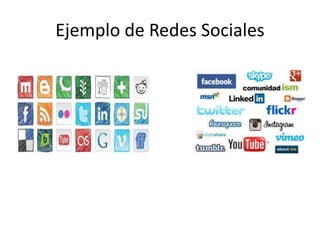 Una red social es una estructura social integrada por personas u organizaciones conectadas por relaciones como amistad, parentesco o intereses comunes. Algunas de las redes sociales más populares son Facebook para conectar personas, Google+ para compartir contenido y crear círculos de amigos, e Instagram y Flickr para compartir fotos.
