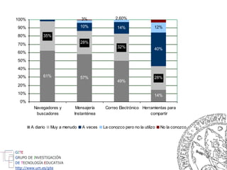![Linda Castañeda Quintero Isabel Gutiérrez Porlán [email_address] [email_address] http ://www.um.es/gite http://www.lindacastaneda.com G I T E G RUPO DE I NVESTIGACIÓN DE T ECNOLOGÍA E DUCATIVA](https://image.slidesharecdn.com/redes-sociales-1211003645707740-8/85/Redes-Sociales-18-320.jpg)