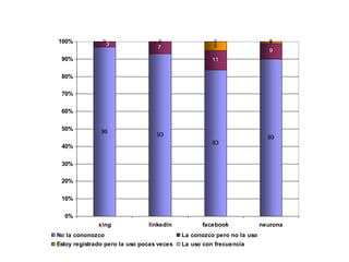 Este documento discute el uso de redes sociales como herramientas de aprendizaje y factores de empleabilidad. Examina cómo las redes sociales pueden usarse para la formación continua y el trabajo en red a escala global. También presenta los resultados de un estudio entre 150 estudiantes próximos a graduarse en magisterio, encontrando que el 82% no sabía qué eran las redes sociales.