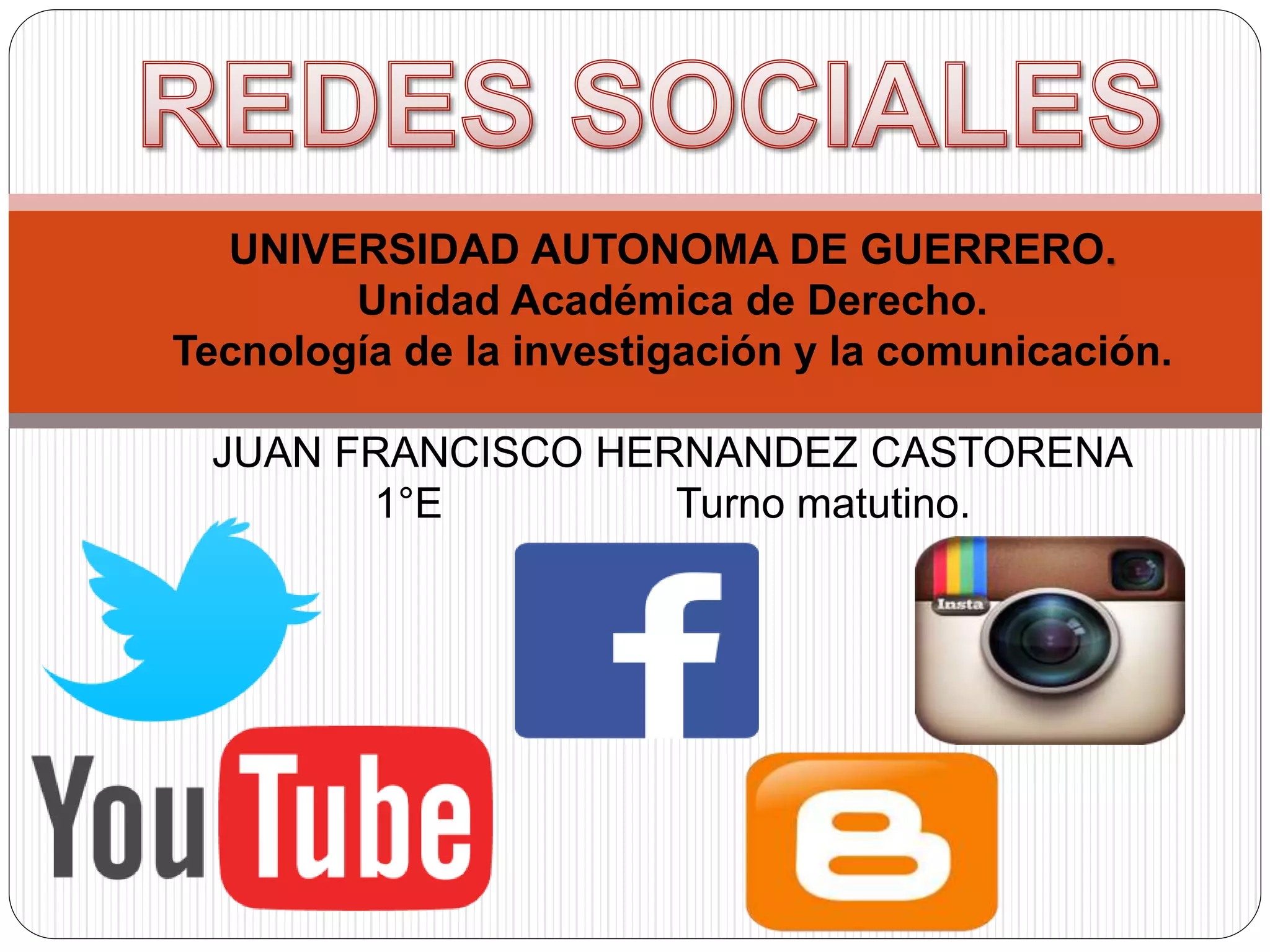 Este documento describe las redes sociales en internet. Explica que las redes sociales permiten a las personas conectarse y conocerse entre sí. Luego detalla que el origen de las redes sociales se remonta a 1995 con el sitio Classmates.com. Finalmente, clasifica los tipos de redes sociales en genéricas, profesionales y verticales o temáticas, y menciona algunas de las redes sociales más populares como Facebook, LinkedIn y Flickr.