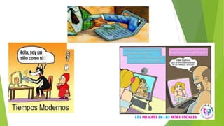 El documento habla sobre las redes sociales, sus beneficios como facilitar la comunicación y conexión entre personas de diferentes lugares, así como sus desventajas como riesgos a la privacidad y seguridad de los usuarios. Entre los beneficios se mencionan el mantener contacto con conocidos, realizar nuevas amistades y conexiones profesionales, mientras que entre las desventajas figuran la exposición de información personal, posibles casos de suplantación de identidad y adicción al uso excesivo.