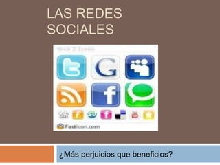 Este documento describe el origen y evolución de las redes sociales desde 1995 hasta la actualidad. Explica los usos más populares como Twitter, Facebook, Flickr, LinkedIn y YouTube, así como las ventajas de permitir la participación global y construir una identidad virtual. También destaca las desventajas como compartir demasiada información personal y la posible adicción a las redes. En conclusión, enfatiza la importancia de utilizar las herramientas de privacidad y mantener la cautela ante desconocidos.