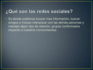 Este documento describe varias herramientas ofimáticas, redes sociales y colaborativas que pueden usarse de acuerdo con un proyecto. Incluye descripciones breves de redes sociales como Facebook y Twitter, donde las personas pueden interactuar, crear grupos y publicar contenido. También menciona el correo electrónico como una herramienta ofimática para enviar y recibir mensajes, y sitios web de recopilación de información que pueden complementar datos recopilados en otros programas o redes sociales.