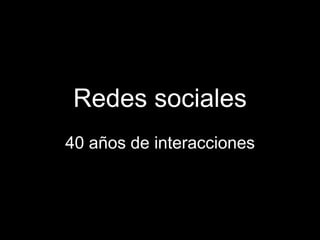 Este documento resume la historia y evolución de las redes sociales desde los años 70 hasta la actualidad. Comenzó con los Usenets y BBS en los 70-80, que permitieron a los usuarios publicar y compartir contenidos. En los 80-90 surgieron los primeros servicios online como CompuServe y Prodigy. En los 90 aparecieron el IRC para chat y ICQ para mensajería instantánea. A principios de los 2000 surgieron las primeras redes sociales modernas como Friendster, LinkedIn, MySpace y Facebook, las cuales permitieron crear perfiles y agregar