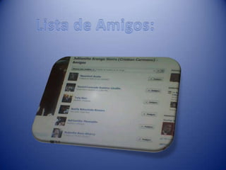 El documento habla sobre el origen y funcionamiento de la red social Facebook. Se creó en 2004 por Mark Zuckerberg y otros estudiantes de Harvard como una red privada para la universidad, pero rápidamente ganó popularidad y se expandió a otras universidades y luego a todo el mundo. Facebook permite a los usuarios crear perfiles, publicar contenido, enviar mensajes y agregar amigos.