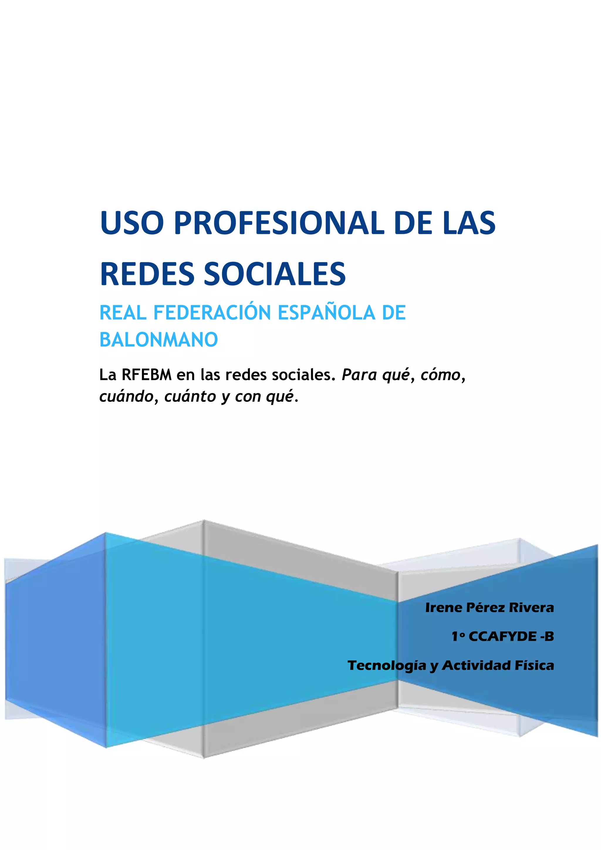 La Real Federación Española de Balonmano usa redes sociales como Twitter, Facebook y su página web para mantenerse en comunicación constante sobre noticias y eventos relacionados con el balonmano en España. Publican información diaria sobre competiciones, jugadores, proyectos y más para atraer seguidores y promover el deporte. Gestionan sus redes sociales a través de un equipo dedicado para compartir información de manera profesional.