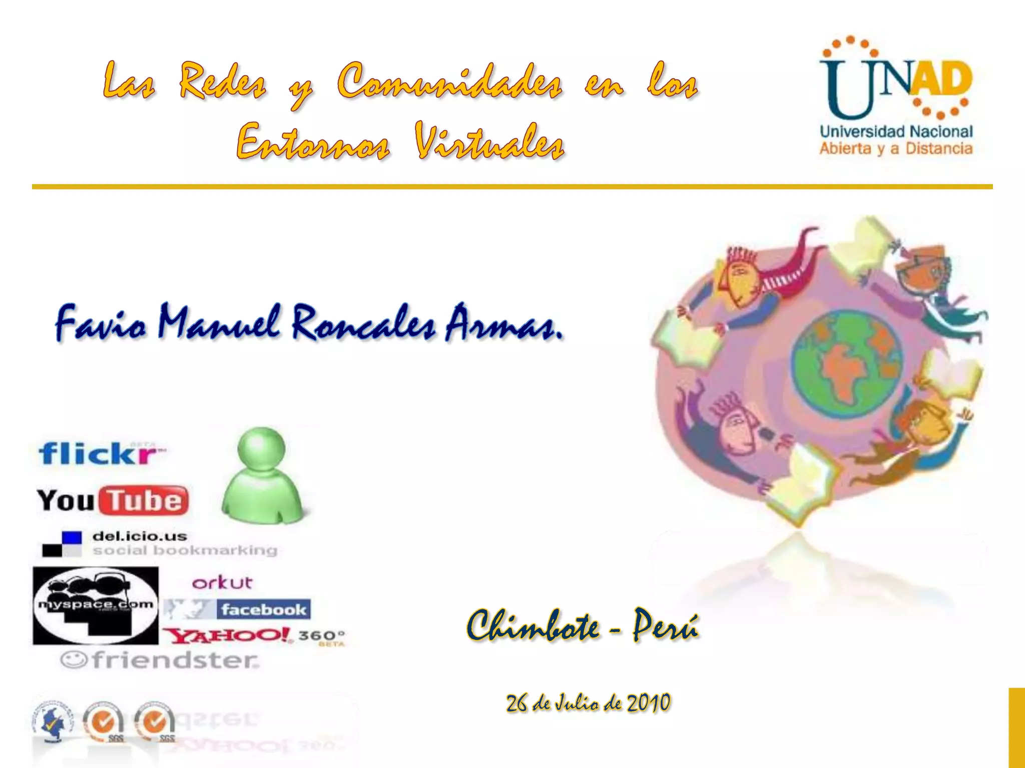 El documento describe varias redes y comunidades virtuales académicas y sociales, incluyendo Educ.ar, Zibynca, la Red Académica Peruana, RedIRIS, REUNA, Hi5, Facebook, Twitter, Sonico y Badoo. Estas redes permiten la interacción y comunicación entre sus miembros de manera asíncrona para compartir información y conocimiento en diferentes campos académicos y sociales.