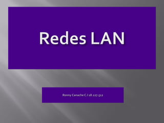 Una red de área local (LAN) conecta computadoras y periféricos dentro de un edificio o un área de hasta 100 metros. Las LAN permiten que las computadoras compartan recursos e información y se comuniquen entre sí. Ventajas incluyen compartir programas e información, e innovación a través del intercambio continuo de computadoras conectadas; desventajas son que las computadoras deben estar cerca geográficamente y solo pueden conectar computadoras personales.