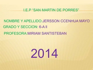 Este documento presenta los resultados de una prueba de reducción y ampliación de figuras realizada por Jersson Ccenhuade Mayo de grado 6-A ll en el I.E.P “San Martín de Porres”. La prueba midió su habilidad para reducir y ampliar figuras en una escala del 1 al 9, donde obtuvo un puntaje total de 7.