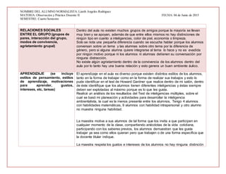 Este documento presenta un perfil grupal de un salón de segundo grado de la Telesecundaria No. 15. Describe las características físicas, relaciones sociales, estilos de aprendizaje y métodos de enseñanza del grupo. Los 14 alumnos son delgados, más o menos de la misma estatura, limpios y aseados. Se llevan bien entre sí sin distinciones. Tienen diferentes inteligencias y estilos de aprendizaje. La maestra utiliza varias estrategias interactivas y evalúa a los estudiantes de forma contin