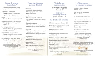 El documento habla sobre cómo resolver conflictos según las enseñanzas de la Biblia. Explica que la Biblia es un libro relacional que ofrece consejos para resolver conflictos que son parte normal de la vida. Señala que aunque no siempre se puedan solucionar las diferencias, siempre se puede buscar la reconciliación y la paz con los demás. También provee consejos prácticos sobre cómo comunicarse mejor durante los conflictos, perdonar y convertir a los enemigos en amigos.