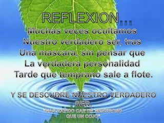 El documento habla sobre las falsas apariencias y cómo eventualmente la verdadera personalidad de alguien se descubre, como un edificio que eventualmente se derrumba. También menciona que es mejor que las personas te quieran por tu verdadero ser en lugar de pretender ser alguien que no eres.