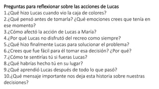 1.¿Qué hizo Lucas cuando vio la caja de colores?