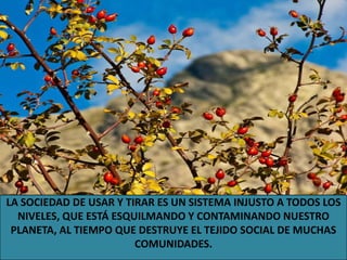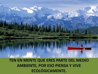 Las reflexiones ecológicas enfatizan la necesidad de vivir en armonía con la naturaleza y cuidar nuestro planeta. Señalan que todos formamos parte del medio ambiente y debemos pensar en forma ecológica. También enfatizan la importancia de preservar la biodiversidad y los recursos naturales para las generaciones futuras.