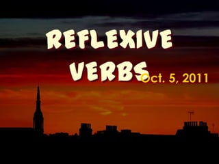 Este documento habla sobre los verbos reflexivos en español. Explica que un verbo reflexivo es aquel en que el sujeto realiza la acción sobre sí mismo, como bañarse o levantarse. Indica que para conjugarlos correctamente, el pronombre reflexivo debe ir delante del verbo y ambos deben concordar con el sujeto. Además, ofrece ejemplos de conjugaciones y oraciones reflexivas, así como instrucciones para la práctica de verbos reflexivos.