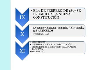 Los liberales ganaron la guerra de Reforma contra los conservadores, pero el país quedó devastado. Benito Juárez asumió la presidencia pero tuvo que trasladar su gobierno varias veces para escapar de los ataques conservadores, estableciéndose eventualmente en Veracruz. Allí expidió las Leyes de Reforma que separaban la iglesia del estado y nacionalizaban bienes eclesiásticos. Los conservadores buscaron ayuda extranjera y los liberales también, pero sólo los franceses intervinieron a favor de los conservadores,