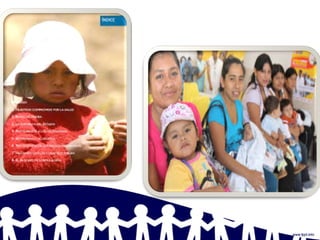 El documento propone una serie de lineamientos y medidas para reformar el sector salud en Perú, con el objetivo de proteger mejor a los ciudadanos. Algunas de las propuestas clave son: 1) Implementar una cartera de servicios de salud pública basada en evidencia; 2) Crear un organismo técnico especializado en salud ambiental y alimentaria; 3) Rediseñar el sistema de inteligencia sanitaria para mejorar la toma de decisiones basada en datos. El propósito general es mejorar los resultados de salud de los peruanos de manera más