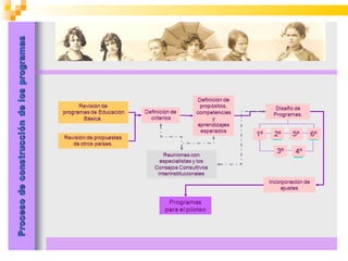 El documento describe los aspectos fundamentales de un plan de estudios para la educación básica en México, incluyendo la articulación entre los niveles educativos, un enfoque en temas relevantes para los estudiantes y su formación integral, y la definición de perfiles de egreso. Además, detalla la distribución de horas por asignatura en primaria, los contenidos de los programas de estudio, y el proceso de aplicación piloto del plan.