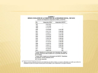 El documento resume las principales formas de contratación laboral propuestas en la reforma, incluyendo el outsourcing, nuevas formas de contratación como prueba, capacitación inicial, temporada y teletrabajo, así como discute beneficios para padres y madres trabajadores. También cubre temas como el pago por hora y datos estadísticos sobre empresas y población económicamente activa. En conclusión, existe inconformidad con la reforma debido a que trae más desventajas que ventajas para los trabajadores.