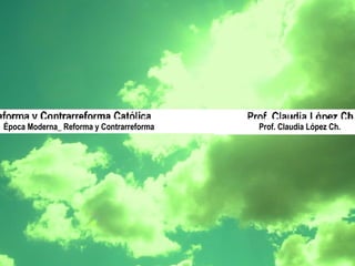 El documento presenta un resumen de la Reforma y Contrarreforma. Explica que la Reforma comenzó con las críticas de Lutero a la venta de indulgencias, lo que llevó a su excomunión en 1520. Luego se expandió el luteranismo por Alemania y otros lugares. También surgió el calvinismo. La Contrarreforma católica incluyó la creación de los jesuitas y el Concilio de Trento para reafirmar la doctrina católica.