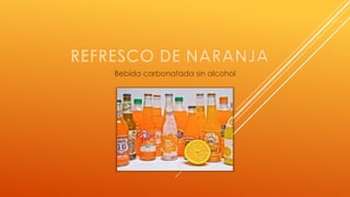 Este documento describe una bebida carbonatada sin alcohol llamada refresco. Explica que un refresco contiene agua carbonatada con saborizantes como edulcorantes naturales o sintéticos, ácidos y colorantes. Detalla el proceso de fabricación que incluye la estandarización del agua, adición de dióxido de carbono y otros ingredientes funcionales. También proporciona información nutricional de un refresco de naranja en particular y resalta la importancia del control de calidad durante el proceso de embotellado