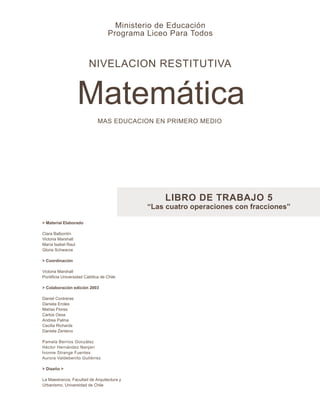 Este documento presenta varios problemas y ejercicios relacionados con fracciones. Incluye guías de trabajo sobre fracciones, equivalencia de fracciones, ampliar y simplificar fracciones, y orden entre fracciones. Proporciona ejemplos resueltos de cada tipo de problema y ejercicios adicionales para que los estudiantes practiquen. El objetivo es que los estudiantes desarrollen habilidades básicas para trabajar con fracciones.