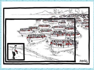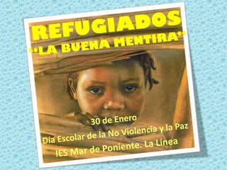 Este documento presenta una película llamada "La buena mentira" sobre cuatro hermanos refugiados de Sudán del Sur que huyen a un campo de refugiados en Kenia y luego son reasentados en los Estados Unidos. Incluye una introducción al tema de los refugiados, un resumen de la trama de la película dividida en cuatro partes, y sugerencias de actividades y temas de debate relacionados con la película como las mentiras, la cultura del desperdicio y la familia. El documento también presenta viñetas y sug