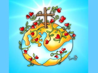 El documento habla sobre la vida y enseñanzas de Jesús. Llegó como un niño, luego se hizo pescador y comenzó a hacer milagros. Enseñó sobre el amor de Dios y a amar a los enemigos. Compartió parábolas como "Yo soy la vid" y "El buen pastor". Sin embargo, algunos no entendieron su mensaje y buscaron la manera de matarlo, aunque él perdonó a sus asesinos.