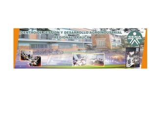 Este documento presenta información sobre los diferentes Centros de Formación Profesional del Servicio Nacional de Aprendizaje (SENA) en las regiones de Amazonas, Antioquia, Arauca y Bolívar. Describe la infraestructura y programas de formación que ofrece cada centro regional para fortalecer los sectores económicos locales. También menciona estrategias como la modernización de ambientes de aprendizaje con tecnología.