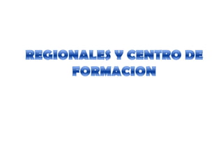 Este documento presenta información sobre los diferentes Centros de Formación Profesional del Servicio Nacional de Aprendizaje (SENA) en las regiones de Amazonas, Antioquia, Arauca y Bolívar. Describe la infraestructura y programas de formación que ofrece cada centro regional para fortalecer los sectores económicos locales. También menciona estrategias como la modernización de ambientes de aprendizaje y el uso de tecnologías para mejorar la formación que brinda el SENA.
