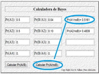 La regla de Bayes describe cómo actualizar las probabilidades de eventos posibles A1, A2, etc. después de observar un nuevo evento B. Conociendo las probabilidades iniciales de los eventos A y la probabilidad condicional de B dado cada A, la regla de Bayes calcula las nuevas probabilidades posteriores de cada A.