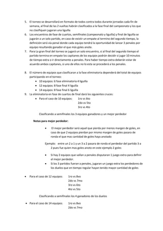 El documento establece las bases de competencia para el Torneo de Fútbol Los Ángeles 2019 en la categoría libre. Detalla los requisitos de inscripción, el formato y desarrollo del torneo, incluyendo la clasificación a la fase final, las reglas para los partidos y el sistema de puntuación. El torneo se jugará durante varias jornadas los fines de semana y coronará a los campeones de la copa y del torneo en general.