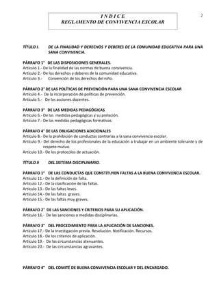 Este documento presenta el reglamento de convivencia escolar de la Escuela Particular Manuel Rodríguez. Establece las normas y procedimientos para promover una sana convivencia entre los estudiantes, profesores y padres. Incluye secciones sobre los derechos y deberes de la comunidad educativa, políticas de prevención, medidas disciplinarias y pedagógicas, y el comité y protocolos para tratar casos de violencia o mala conducta.