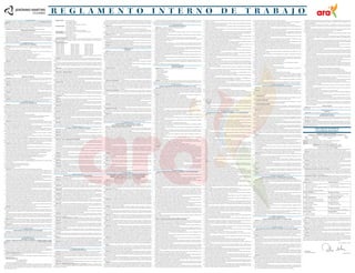 Este documento presenta el reglamento interno de trabajo de la empresa Jerónimo Martins Colombia SAS. Establece disposiciones sobre admisión de personal, período de prueba, y contrato de aprendizaje. Detalla requisitos para la admisión de aspirantes, como documentos a presentar y exámenes médicos. Explica que el período de prueba no puede exceder los 2 meses y durante este el contrato se puede dar por terminado sin previo aviso. Finalmente, define el contrato de aprendizaje como una forma de obtener formación técn