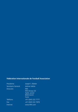 Este documento presenta las reglas del fútbol y describe las dimensiones y marcas requeridas para el terreno de juego, incluyendo líneas, áreas, metas y banderines. También especifica los requisitos para el balón, como su forma, tamaño, peso y material.