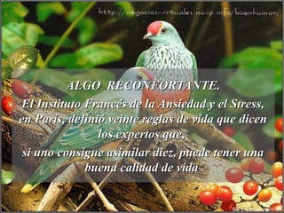 Las tres cosas más difíciles de la vida son guardar un secreto, perdonar una ofensa y aprovechar el tiempo, según Benjamin Franklin. El Instituto Francés de la Ansiedad y el Estrés define veinte reglas de vida que, de seguir diez, pueden mejorar la calidad de vida, incluyendo tomar descansos regulares, aprender a decir no, y concentrarse en una tarea a la vez.