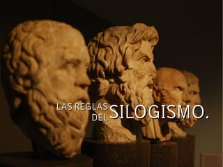 Este documento resume las reglas del silogismo. Explica que un silogismo consta de dos premisas y una conclusión, y que debe cumplir ciertas reglas como tener solo tres términos, no puede inferirse lo más de lo menos, y el término medio debe tomarse universalmente por lo menos en una premisa. También indica que de dos premisas afirmativas no puede sacarse una conclusión negativa, y de dos premisas negativas o particulares no puede sacarse conclusión alguna.