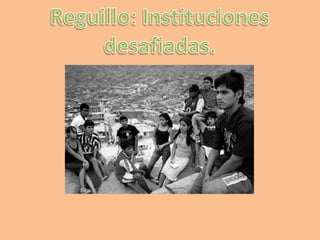 Este documento discute varios desafíos que enfrentan los jóvenes en la sociedad, incluyendo una brecha entre las preocupaciones de los jóvenes y su capacidad para tomar acción pública, la falta de mecanismos institucionales para integrar socialmente a los más vulnerables, y la demonización de los jóvenes. También analiza factores que influyen en la construcción de identidad de los jóvenes como la precarización de sus vidas, el retiro del estado de bienestar, y la pérdida de confianza en las instit