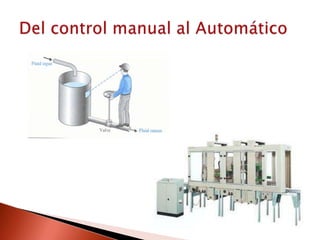 Este documento describe los sistemas de regulación automática y control. Explica que estos sistemas tratan de regular el comportamiento dinámico de un sistema con mínima intervención humana mediante órdenes de control. También describe los conceptos clave como variables de estado, planta, proceso, perturbaciones y realimentación. Además, proporciona ejemplos históricos de control automático y diagramas de bloques para representar modelos matemáticos de sistemas.