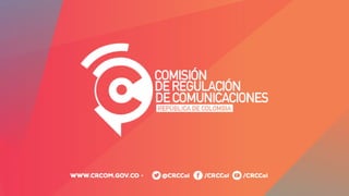 La Comisión de Regulación de Comunicaciones (CRC) regula el sector de telecomunicaciones en Colombia, promoviendo servicios de calidad y eficiente competencia. Establece obligaciones de reportes de información para operadores y aplica contribuciones anuales basadas en ingresos brutos. La CRC también proporciona procedimientos de fiscalización y sanciones por incumplimientos en la normativa y contribuciones.