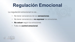 La regulación emocional implica ser consciente y aceptar las propias emociones positivas y negativas, distinguir entre sentir, expresar y actuar según las emociones, y saber gestionarlas de forma eficaz. Reducir la vulnerabilidad emocional requiere dormir y comer bien, hacer ejercicio, y realizar actividades que aumenten la autoeficacia.