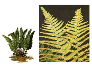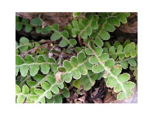 Los musgos son plantas pequeñas y simples que viven en ambientes húmedos. Se reproducen mediante esporas contenidas en cápsulas y también de forma sexual a través de gametos. Los helechos son más complejos que los musgos ya que tienen vasos conductores, pero también se reproducen por esporas. Ambos requieren de humedad para vivir.