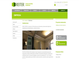 Reiter se especializa en el diseño, fabricación e instalación de muros móviles acústicos, creando espacios funcionales y dinámicos para sus clientes. Ofrecen servicios de asesoría acústica y tienen experiencia en más de 3000 proyectos en diversos sectores desde 1974. La empresa prioriza las necesidades del cliente, garantizando un compromiso y dedicación responsables en cada proyecto.