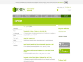 Reiter se especializa en diseñar, fabricar e instalar muros móviles acústicos para crear espacios funcionales y rentables. Ofrecen servicios de asesoría acústica y han completado más de 3000 proyectos desde 1974 en diversos sectores. La empresa prioriza a sus clientes y se compromete a mantener el funcionamiento óptimo de sus productos.