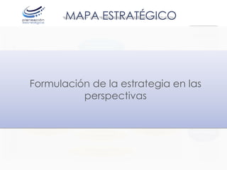 El mapa estratégico formula la estrategia en las perspectivas de clientes, procesos, aprendizaje y desarrollo, e incremento financiero. Los objetivos buscan posicionar la marca como primera opción para la compra de vehículos, mejorar la satisfacción de clientes, fortalecer procesos, e incrementar la rentabilidad a través de la innovación y el mejoramiento continuo.